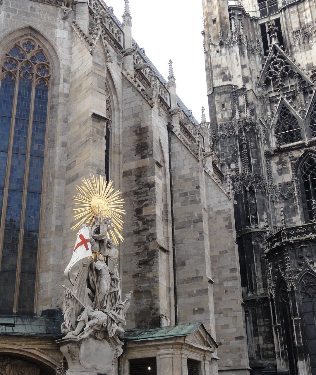 The next day,Friday, we walked around some more. We walked through a market, which was primarily produce, but also sold coffee and scarves and whatnot. I bought another scarf, and some coffee! :P Austria is known for their coffee houses, so I thought it fitting. We actually went to one after dinner the night before, before the concert , to have a traditional cake called sachuntorte? I don't know how to spell it, but what it is is three delicious layers of chocolate! Yum! Anyways, after the market, we went up to the Stephandom. It's this great gothic church! The roof of which, has some great details! It was here that we met up with my high school foreign exchange friend Gilbert!